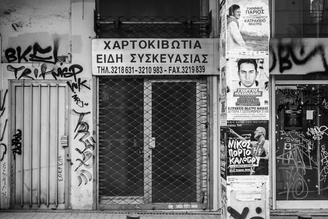 The Acropolis as well as main attractions and museums were crowded with the usual flow of tourists and visitors. It was only when I started walking off the beaten path then I encountered the real face of the capital. Stores were shut, most of the walls were defaced by graffitis and the sign Enoikiazetai (to rent) was on many windows and displays. It is estimated that 2/3 of shops in Athens shut down in the last year. A disquieting feeling of recent abandonment was in the air, while the tourist area swarmed as always.
