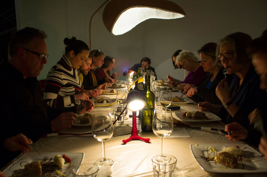 The first room focused the visitors attention on the creation process of the objects as an introduction to the main room, where the whole collection was presented as part of an installation, kept in an environment made of fabric threads. This space has also been chosen for the opening’s private dinner where guests tasted the specialities prepared by Luigi Ciaccia, the Italian Chef from the restaurant Chilometrozero, who created a set of dishes inspired and connected to the colours, textures and appearance of the exhibited works.