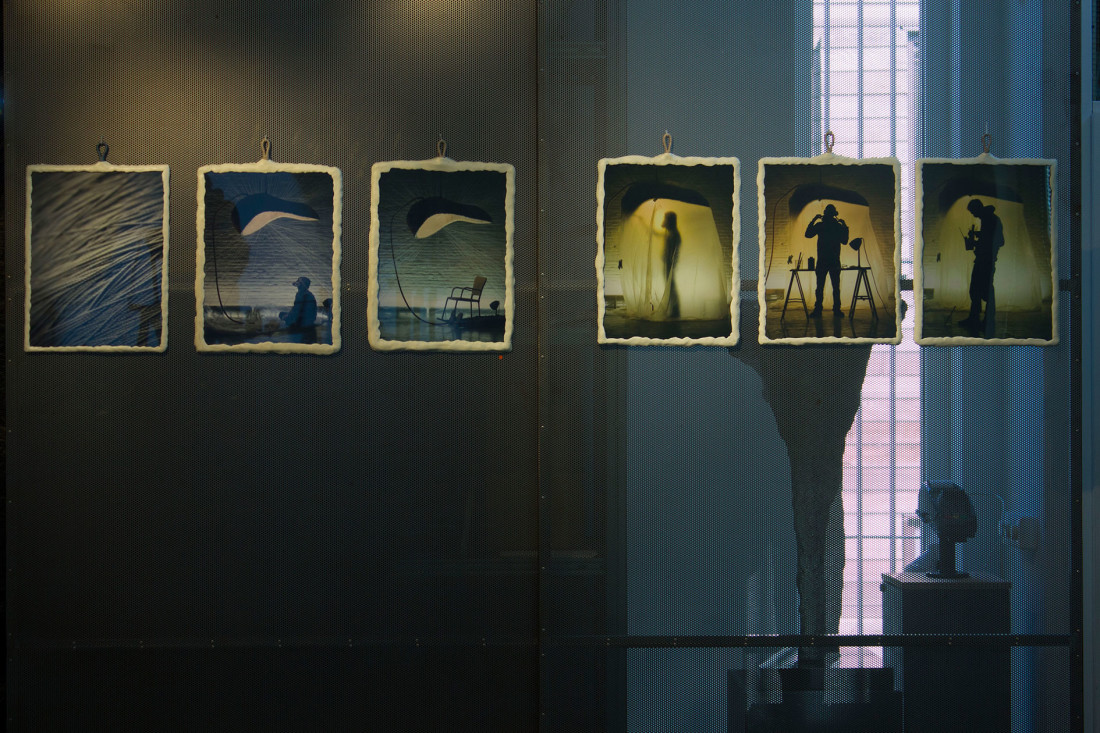 Upon entering the gallery, visitors encountered the video installation and the photographic work, presented in a handmade frame made with the same objects’s material, the epoxy clay. Wine and fried anchovies were served on a table representing the studio environment. Interior and painting were conceived and developed by Sylwia Kaden while the dj and producer Giovanni Damico created the sound installation.
